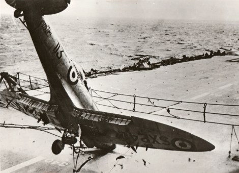 Modified Spitfire BL676 ‘Bondowoso’ during its trial deck landings aboard HMS Illustrious