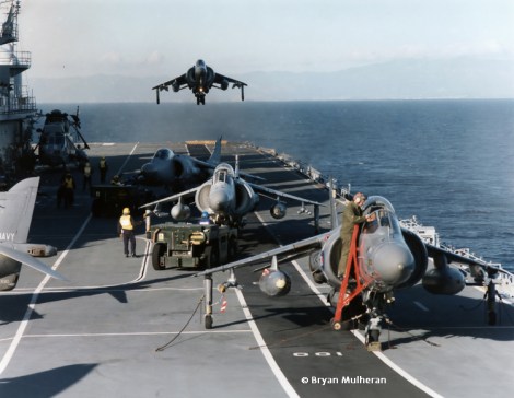 I am indebted to Bryan Mulheran for the use of the following photographs from his collection. These images were taken aboard HMS Illustrious between April and June 1995, prior to a short stop-over in Corfu. Bryan’s website, including many images of military aviation and other themes, can be found here.