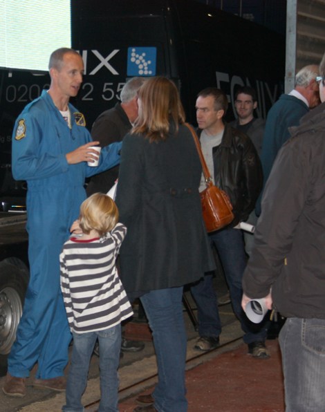 Pilot Matt Whitfield chats with Sea Vixen enthusiasts in the autograph queue