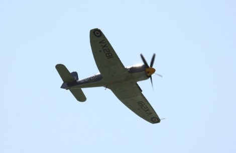 The Royal Navy Historic Flight’s beautiful Hawker Sea Fury salutes the last purpose-built aircraft carrier in RN service for the time being