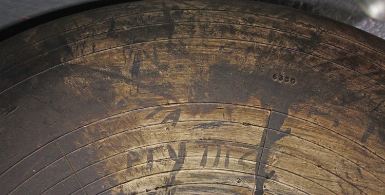 Fairey Barracuda mainwheel with ‘RNAS Ronaldsway’ visible in the paint on the sidewall