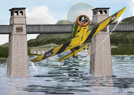 During the Second World War, many pilots flew under bridges to test their skill or alleviate the boredom of routine, second-line flying. One of these was Derrick Edwards, a Fleet Air Arm pilot who flew under both Menai bridges across the strait between Wales and Anglesey.